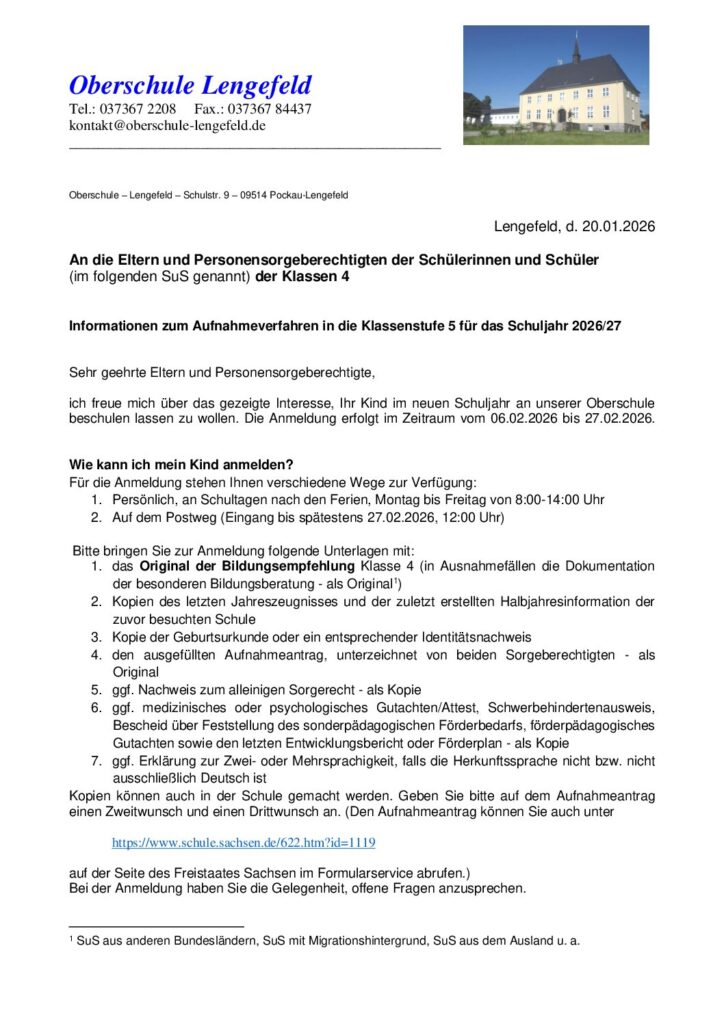Anmeldung der 5. Klassen für das neue Schuljahr